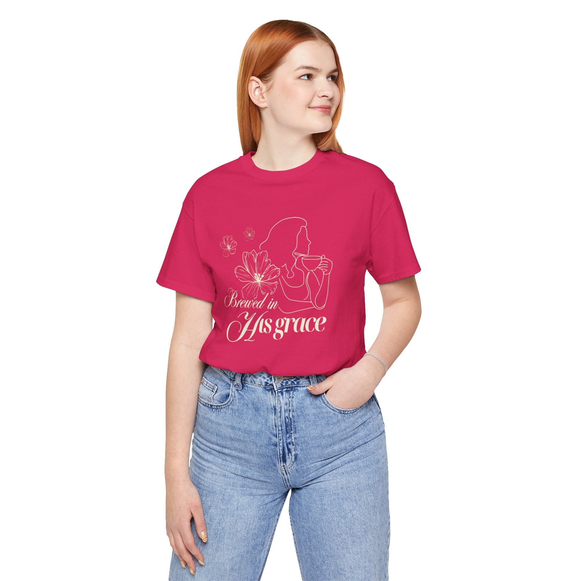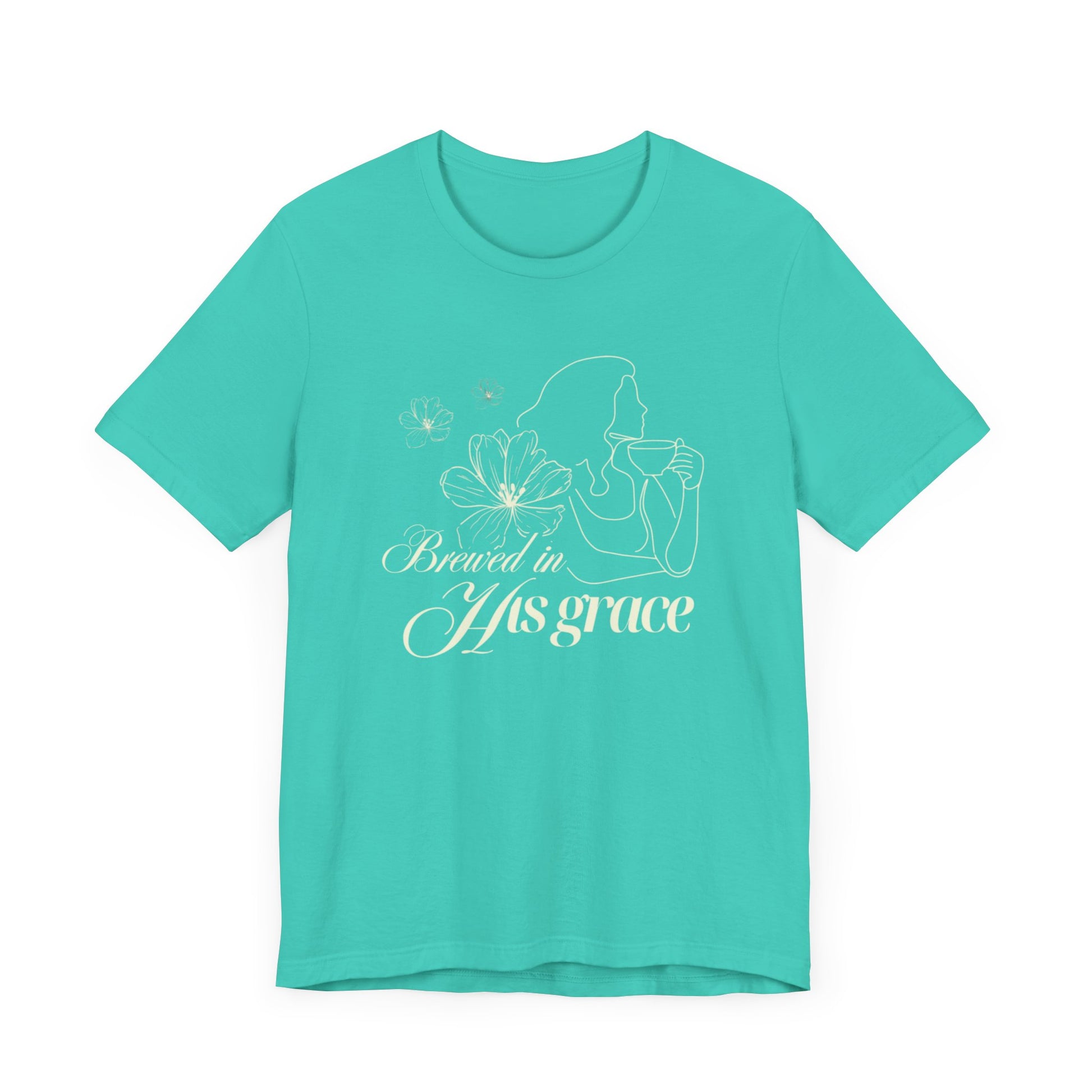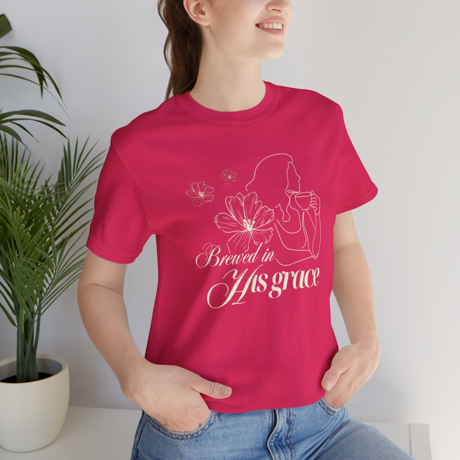 Start every day steeped in grace with this feminine coffee-lover tee. The delicate floral design and handwritten script make it a comforting staple for quiet mornings or coffee shop conversations about faith.