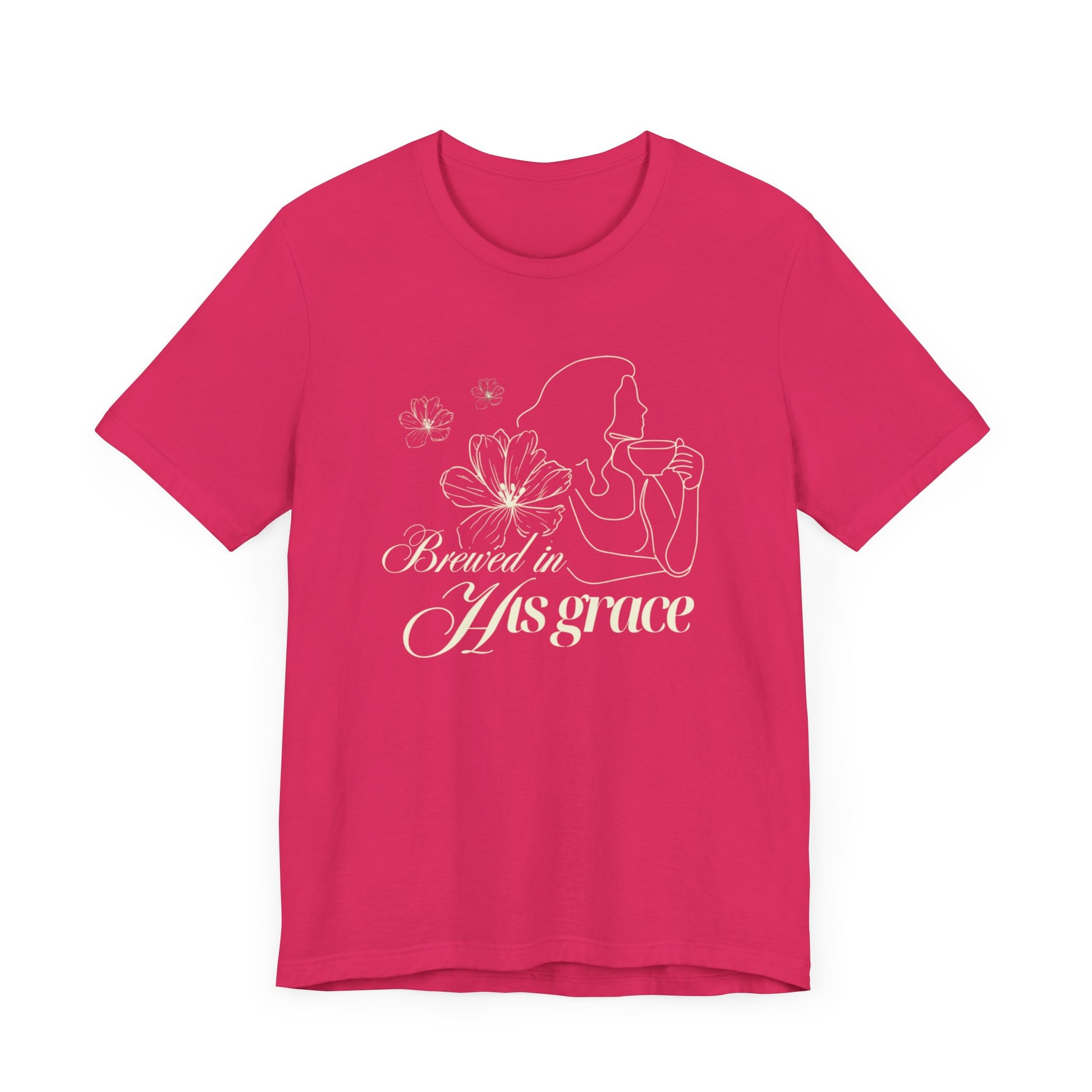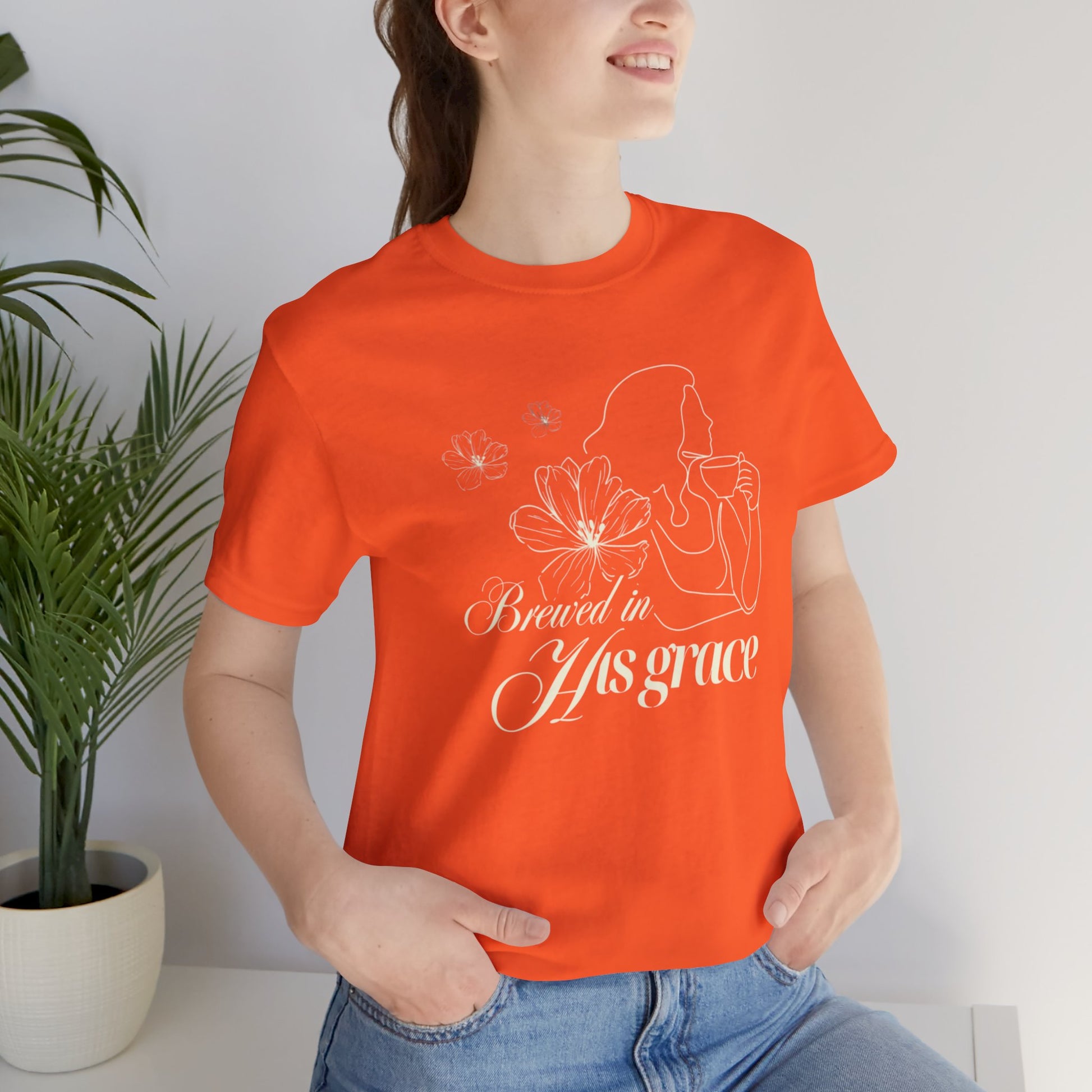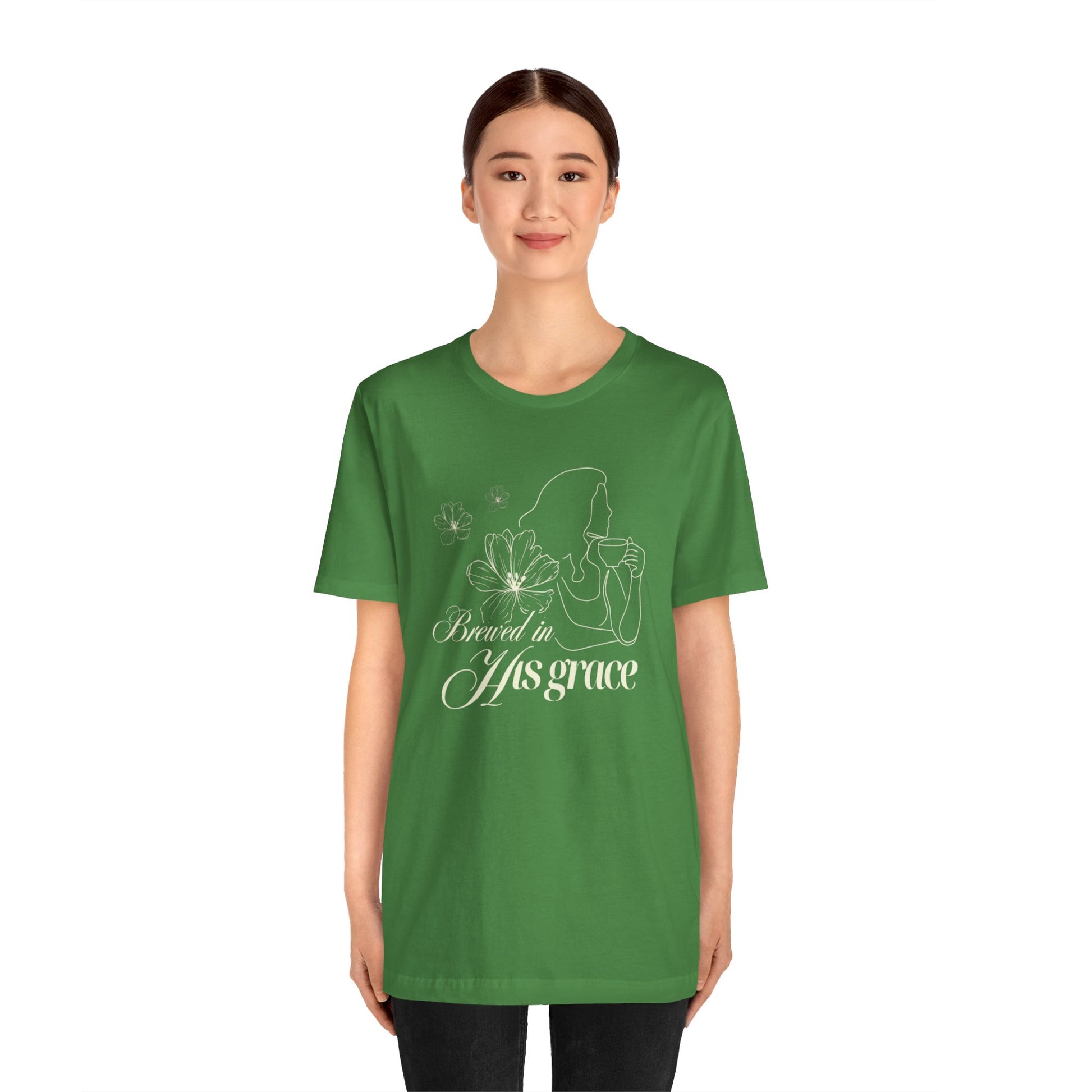 Start every day steeped in grace with this feminine coffee-lover tee. The delicate floral design and handwritten script make it a comforting staple for quiet mornings or coffee shop conversations about faith.